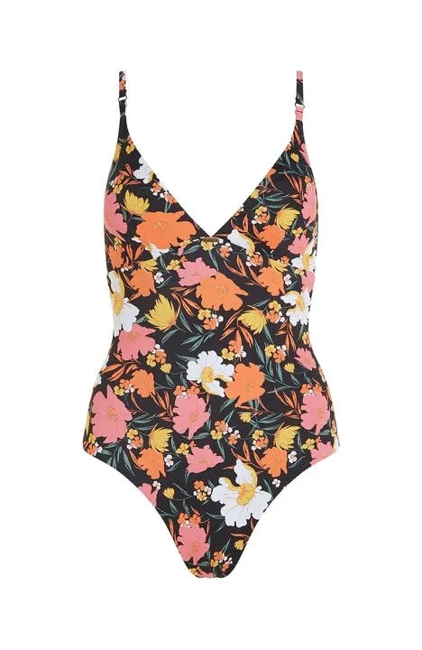 Dámske celé plavky Sunset Swimsuit poskytujú všestrannú možnosť do vody alebo na súši. Stredne zakrytý výstrih do V s odnímateľnými vypchávkami na prsiach, nastaviteľnými ramienkami vzadu a stredným zadným krytím ponúkajú pohodlné, lichotivé nosenie s dostatočnou podporou pre neobmedzený pohyb. Vyrobené z 82% recyklovaného polyamidu.
