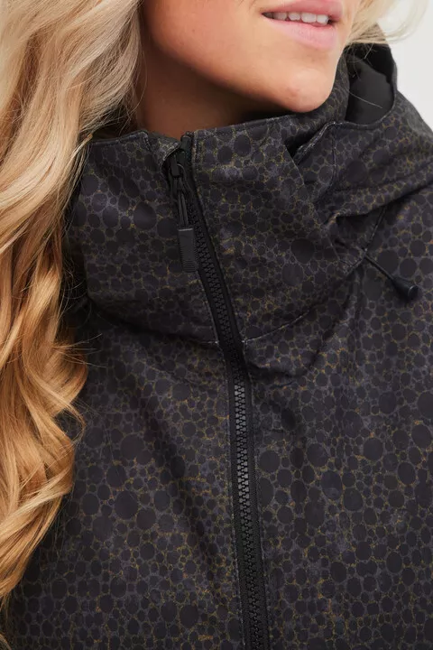 - Kapucňa: Nastaviteľná kapucňa s vysokým golierom na ochranu pred vetrom