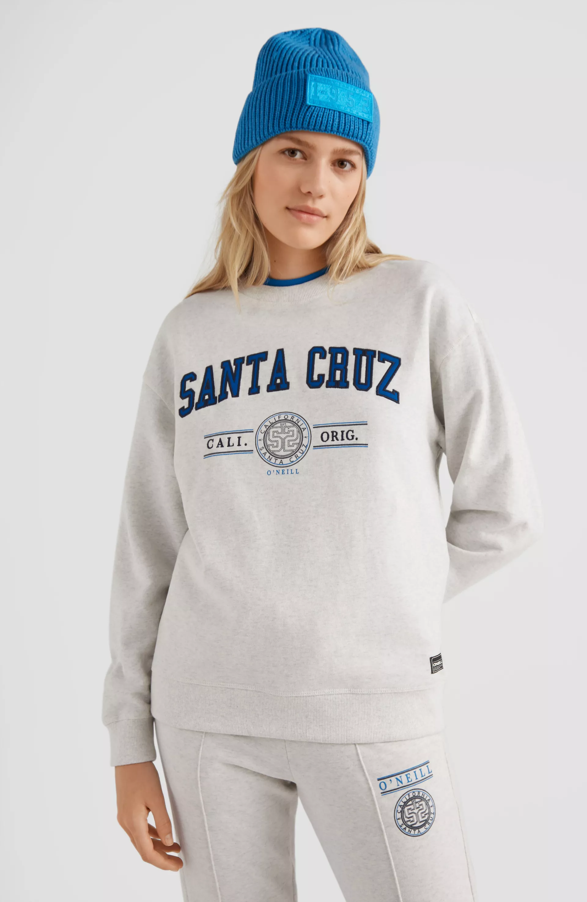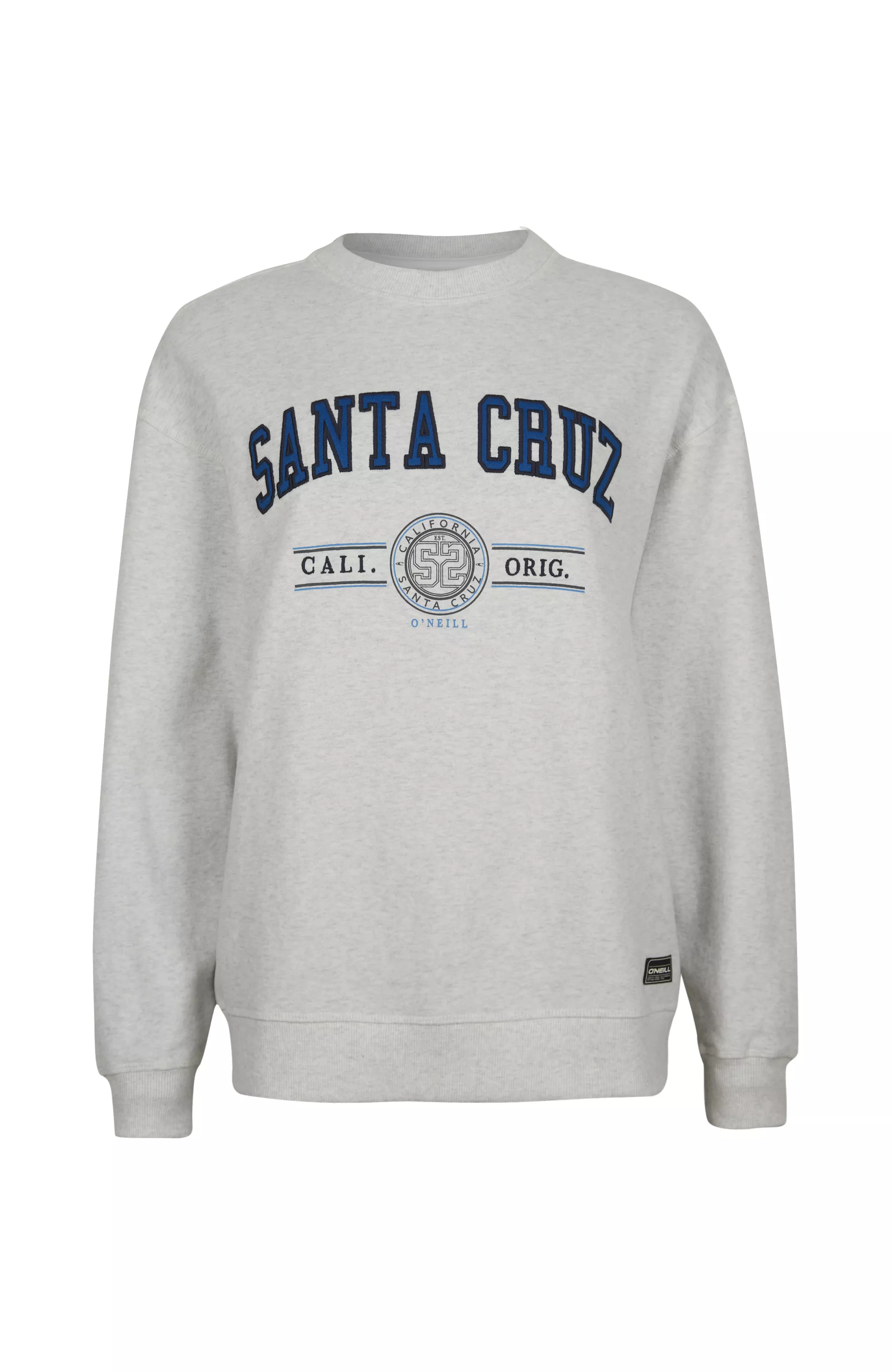 Dámska mikina bez kapucne z materiálov O'Neill Blue. Voľný strih s výrazným logom na hrudi, ktorý obsahuje kombináciu potlače, nášivky a výšivky. Surf State Crew má rebrovanie na goliery, leme a manžete a vo vnútri je česaná.