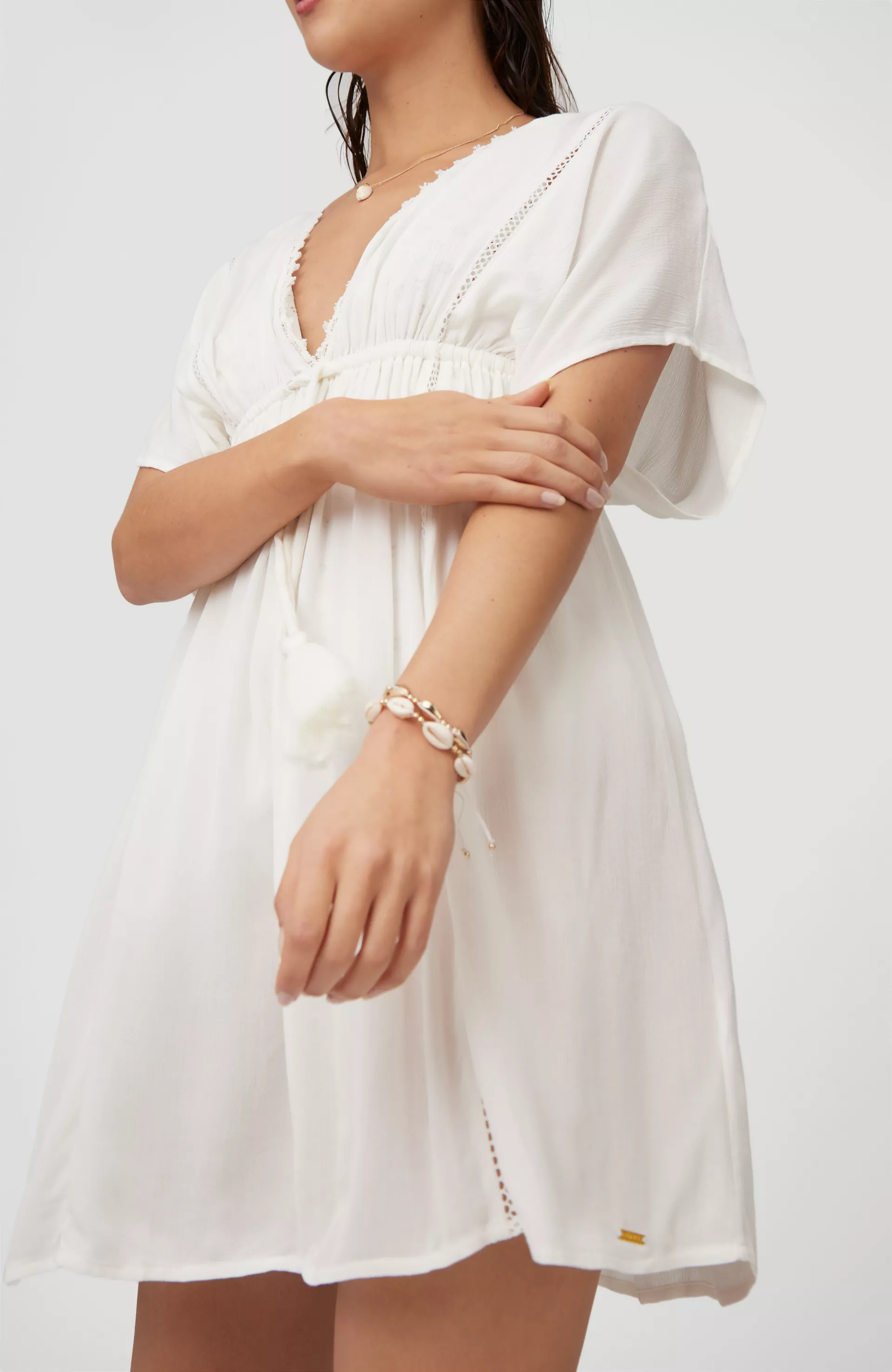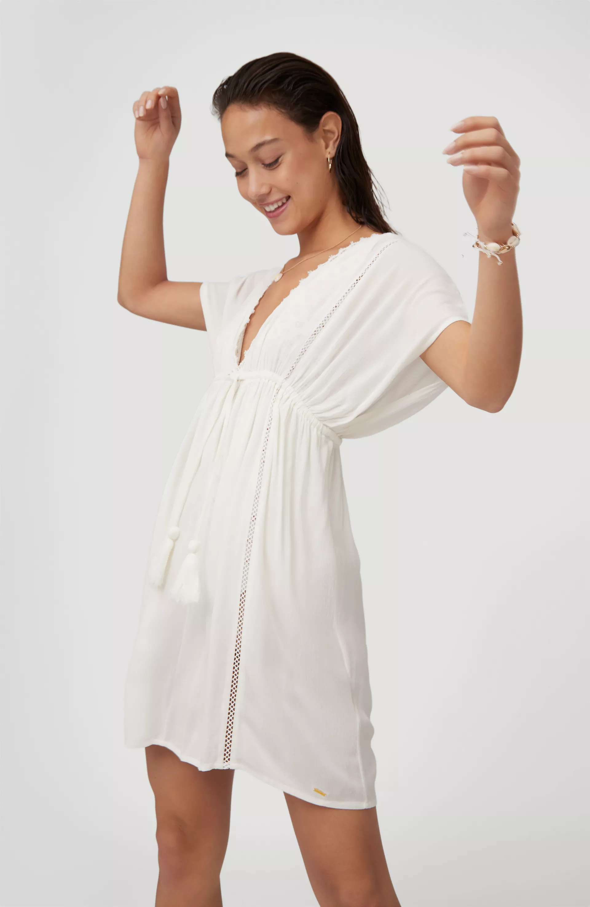 Doladiť váš vzhľad do dokonalosti sú pripravené dámske plážové šaty Boho Beach Cover Up. Ľahká, neuveriteľne vzdušná tkanina, šnúrka na utiahnutie s výraznými strapcami, čipka a raglánové rukávy sú detaily, ktorým sa naozaj nedá odolať.