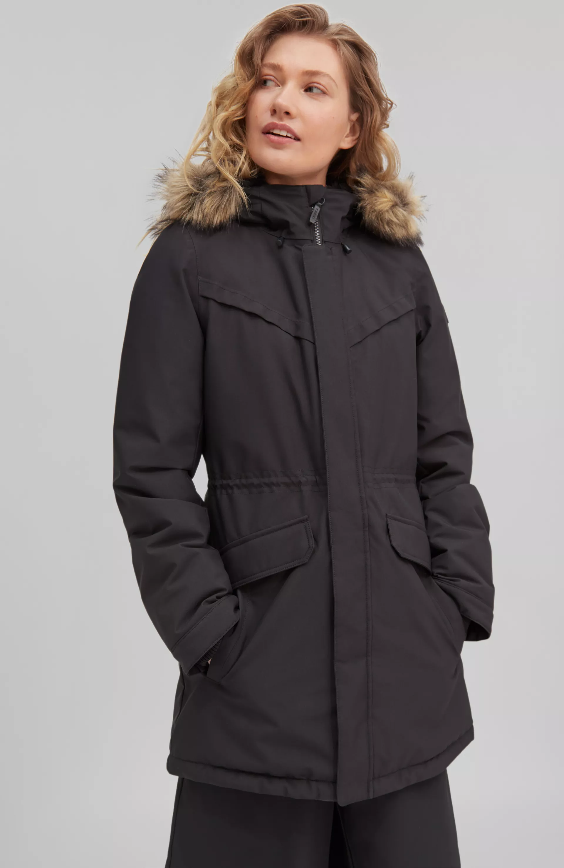 10 000 / 10 000 g/m2 vodotesnosť a priedušnosť na impregnovanom materiály, kriticky podlepené švy a vyrobené z 50% recyklovanej textílie. Nastaviteľná v páse a odnímateľná umelá kožušina na golieri vám umožní upraviť si ju podľa seba.