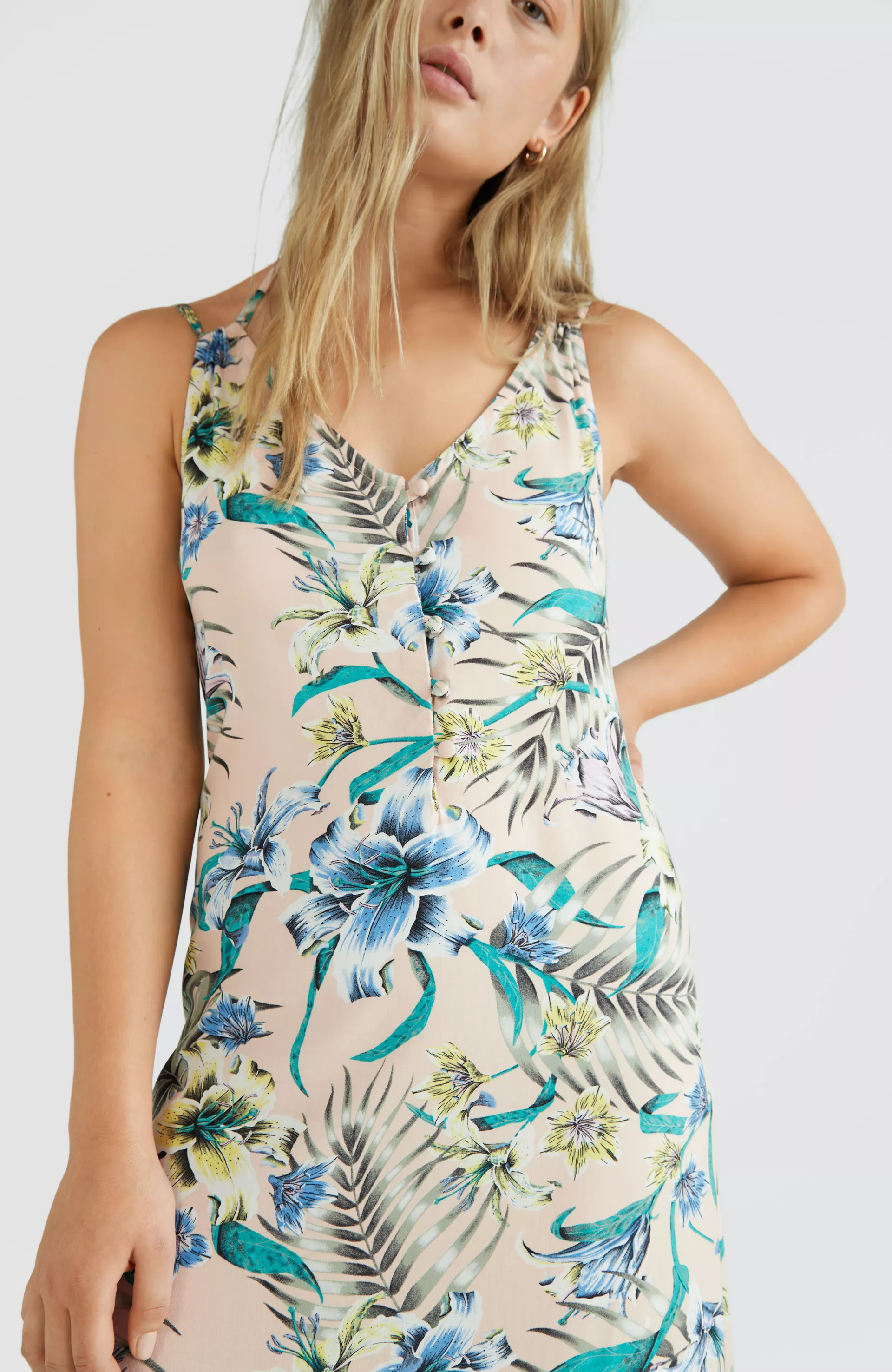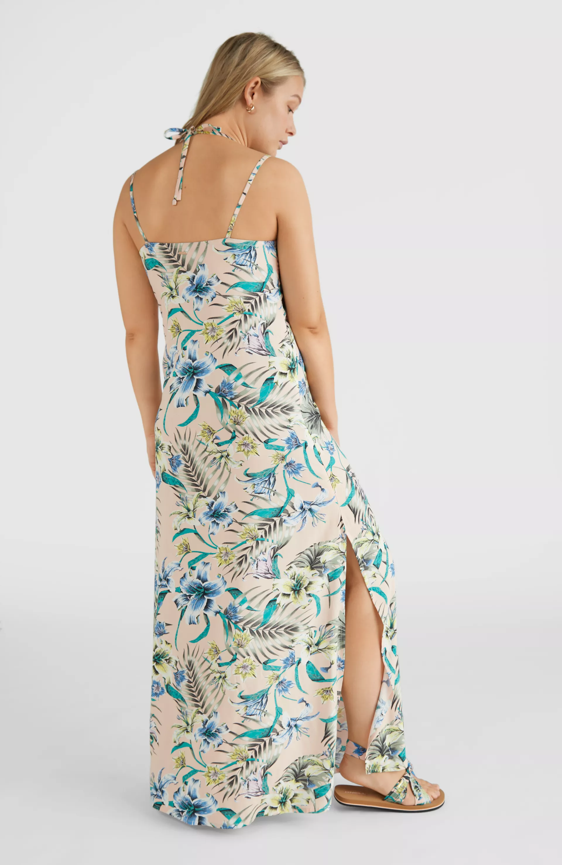 Dámske dlhé letné šaty Mix & Match vyrobené z materiálov 100% O'Neill Blue. S nastaviteľnými ramienkami a letnou potlačou na príjemnej látke z viskózy od LivaECO. Vďaka svojim vlastnostiam sú ideálne na horúce letné dni alebo na pláž.