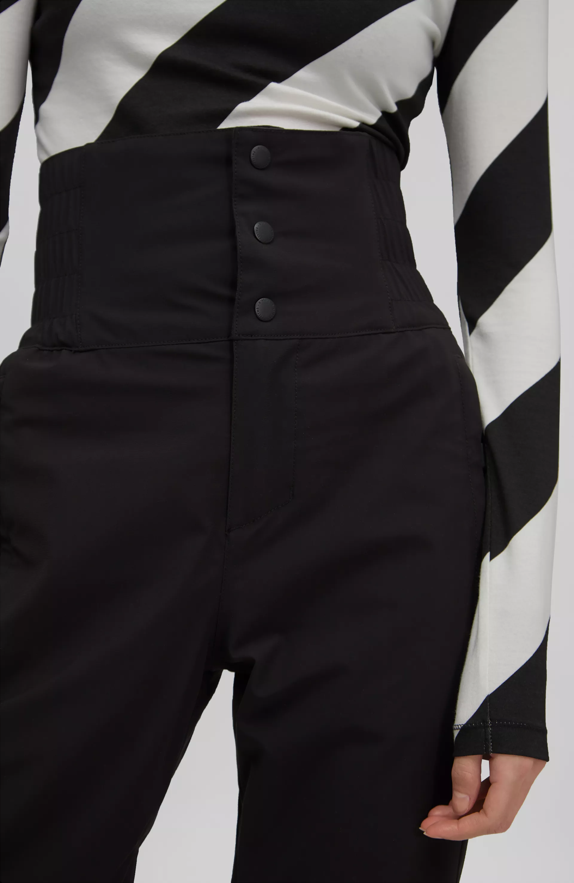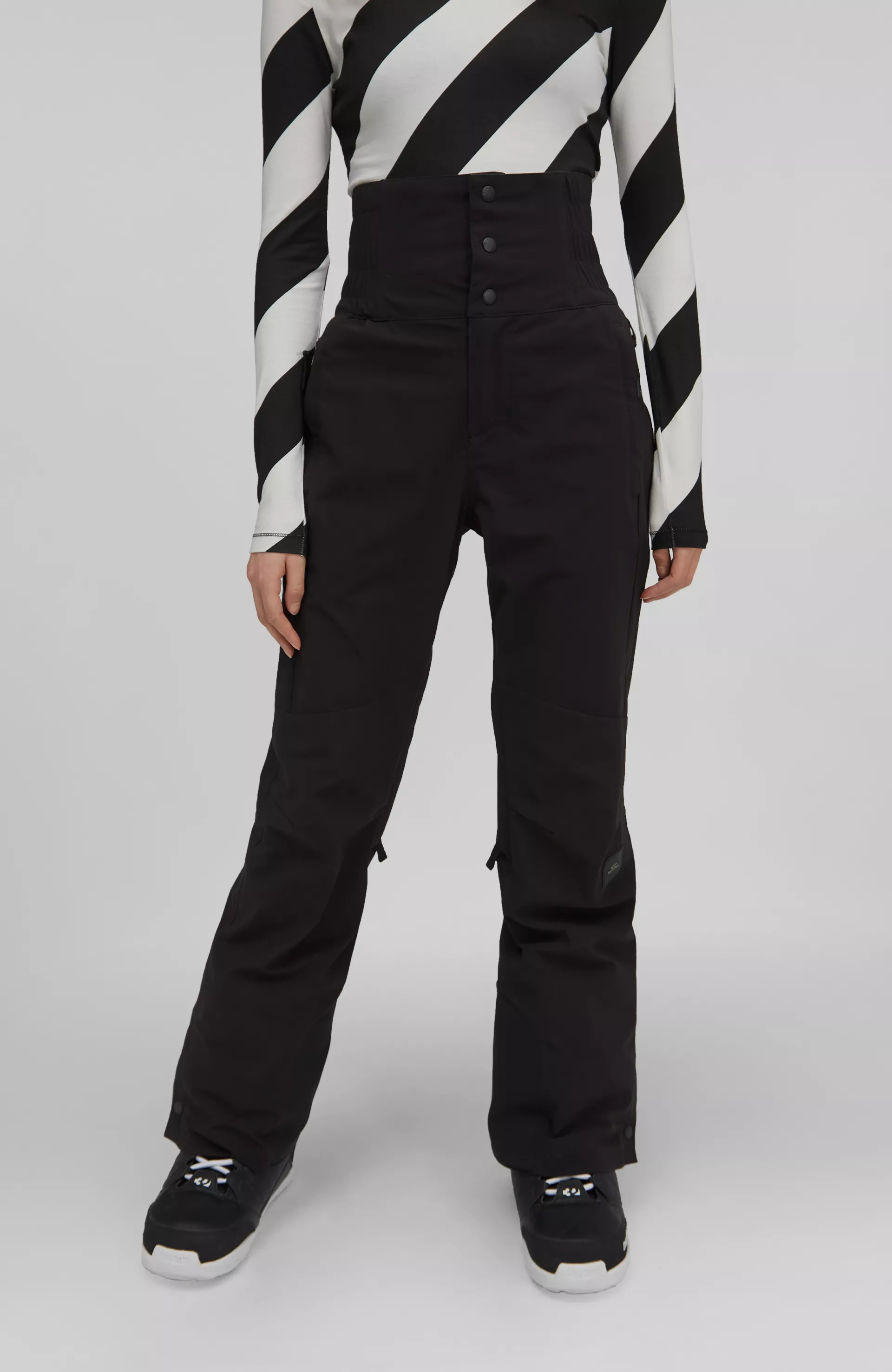 Lyžiarske nohavice s dámskym slim strihom s vysokým pásom sú funkčné a sofistikované. Navrhnuté tak aby chránili spodnú časť chrbta pred chladom. Toto miesto je najkritickejšie počas celej zimy najmä pri športových aktivitách keď môže zachladnúť za krátky čas. Zapínanie na patentky s elastickými bočnými časťami pre zaistenie dokonalého prispôsobenia presne podľa tvaru vášho tela. Vystuženie nohavíc v oblasti lyžiarky, aby sa zabránilo roztrhnutiu pri dotyku s ostrou hranou lyže. Nastaviteľné vetranie a vysoká úroveň nepremokavosti a priedušnosti pre dokonalý zážitok z jazdy.