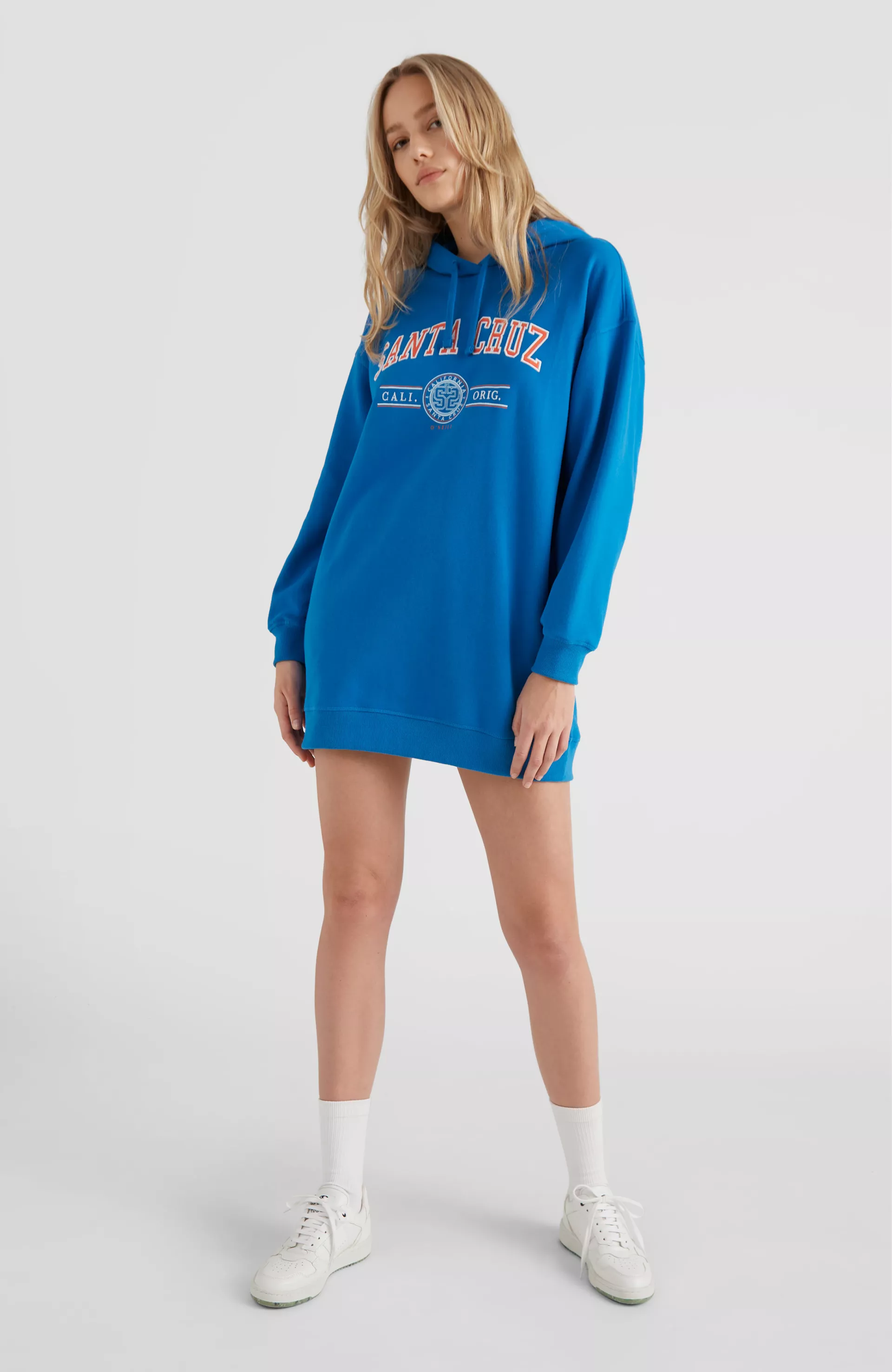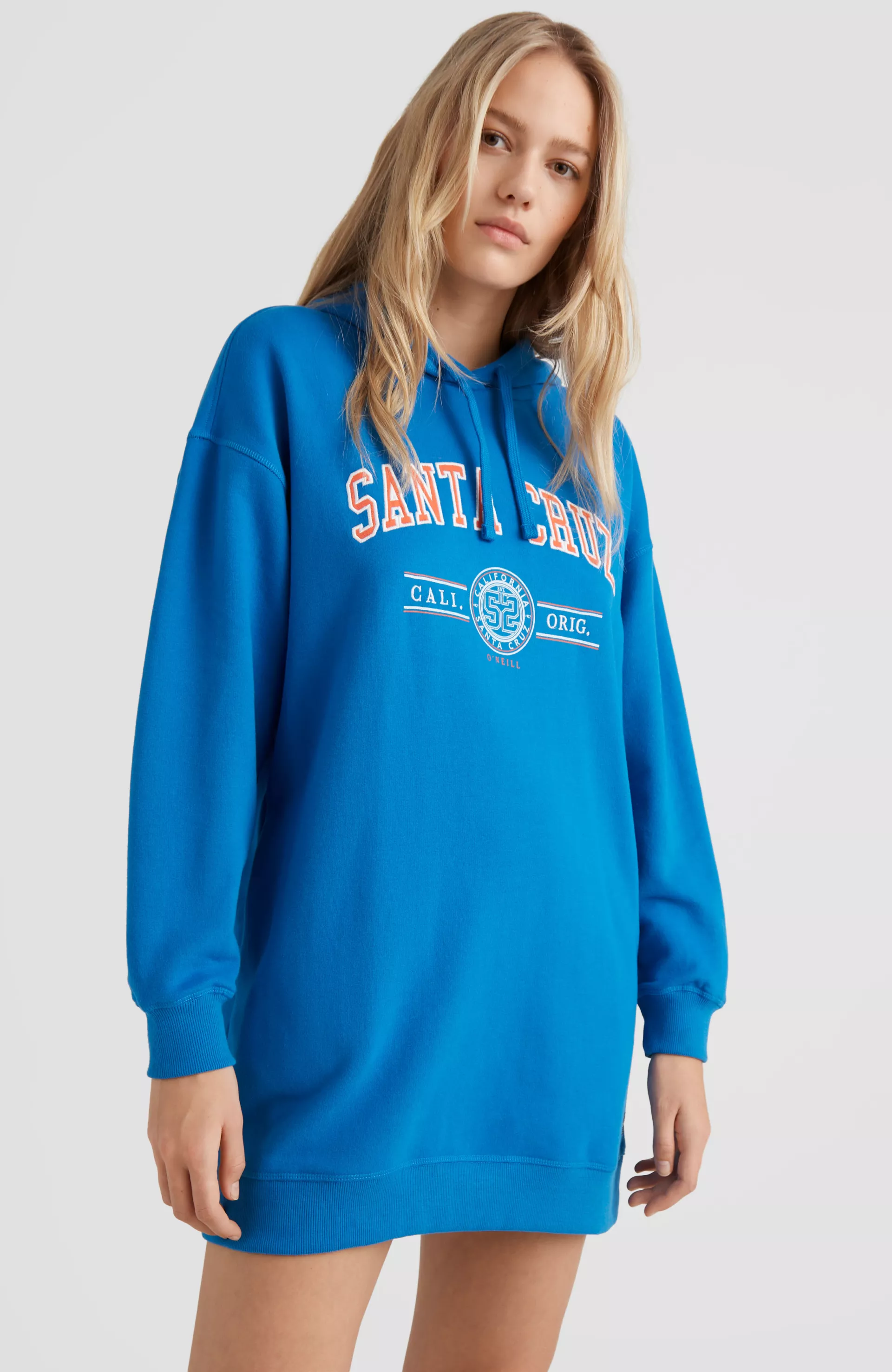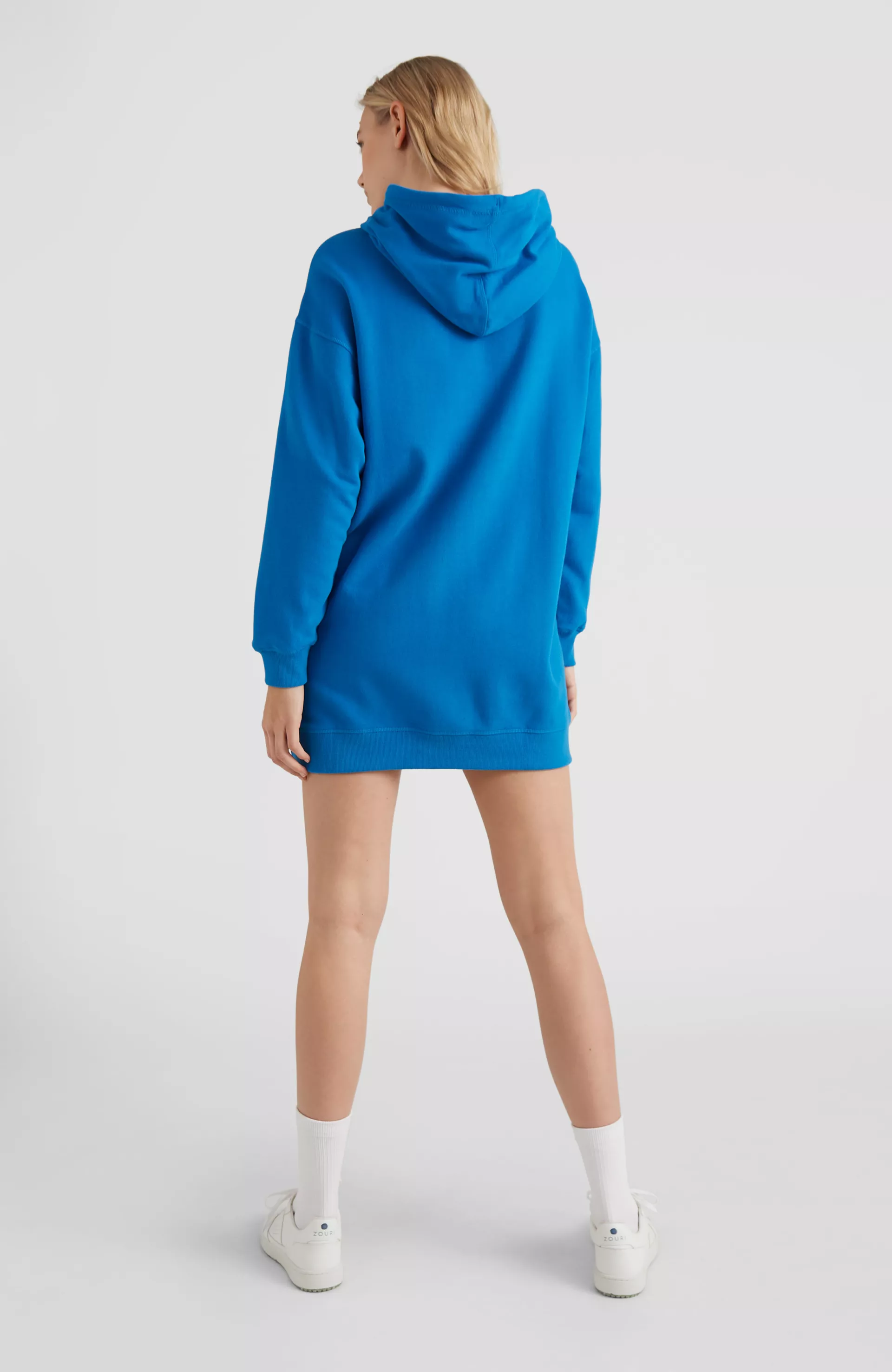 Dámske mikinové šaty s kapucňou v pohodlnom dámskom strihu oversized. Česaný vnútorný materiál, bočné skryté vrecká a uvoľnený strih. Doprajte si pohodlie vždy a všade, budete sa cítiť skvele. Vyrobené zo zmesy bavlny a recyklovaného polyesteru.