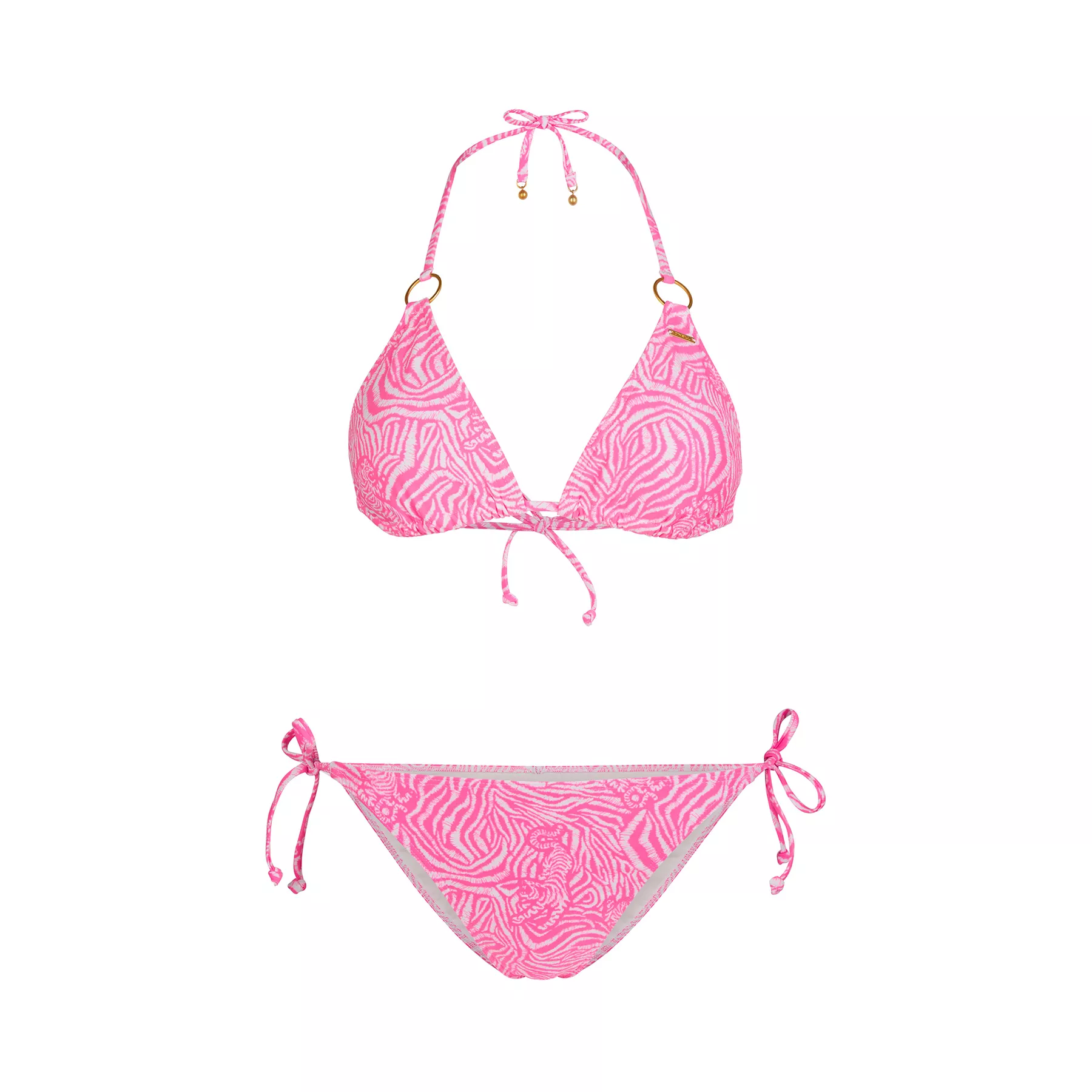 Dámske dvojdielne bikiny Capri Bondey Bikini Set s celoplošnou potlačou alebo v jednej farbe sú kúskom, s ktorým iste rada privítate leto. Klasický trojuholníkový tvar košíčkov s odnímateľnou výplňou, zdobenie kovovými detailmi a spodný diel so stredným pokrytím. Vyrobené zo 78 % ECONYL® — nekonečne recyklovateľného nylonu. Upravené technológiou O'Neill Hyperdry na rýchle vysušenie po návrate z vody.