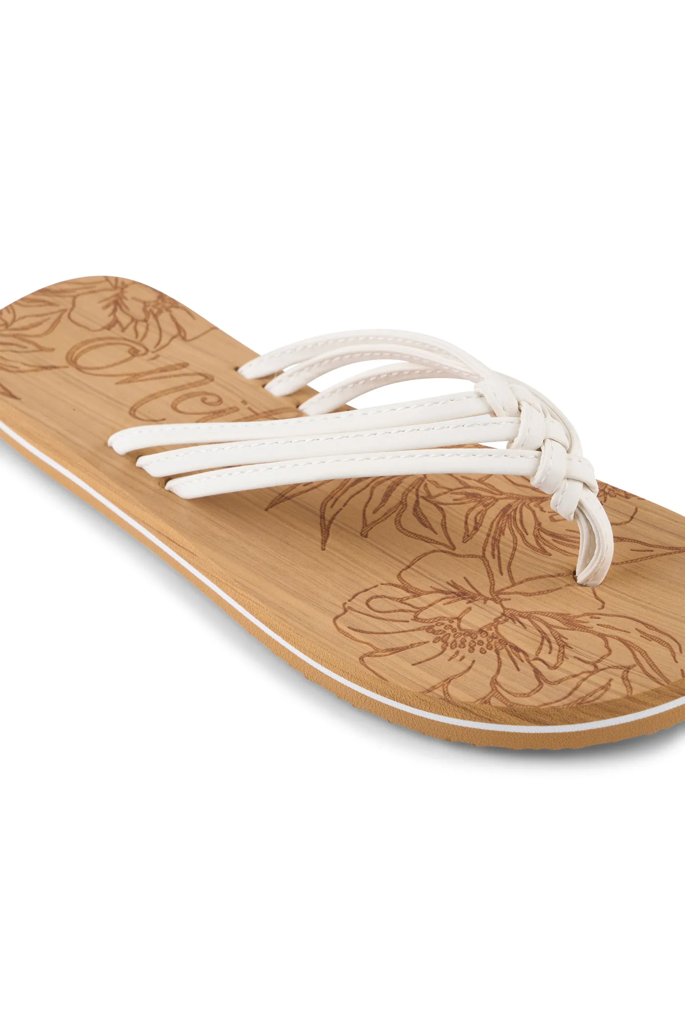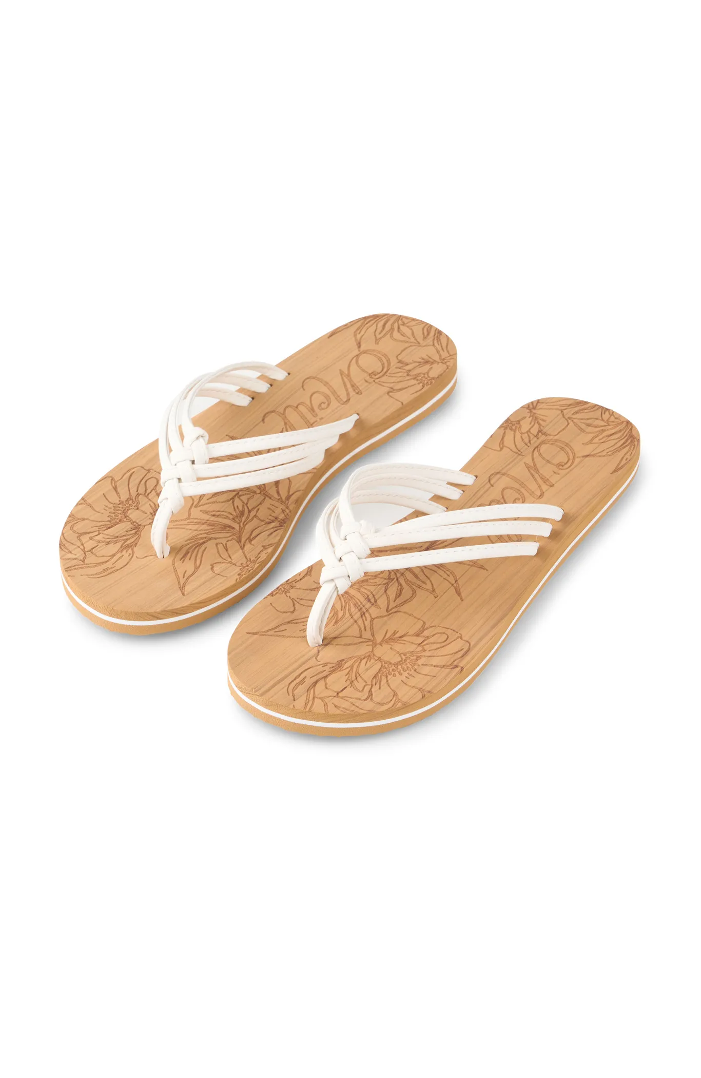 Sandále O'Neill Ditsy Sandals spájajú podporu chodidla so štýlovým letným dizajnom. Trojnásobný pletený remienok a pevná gumová podrážka zaručujú stabilitu a spoľahlivú oporu pri každom kroku. Mäkká stielka s efektom dreva, laserovo vytlačeným logom a motívom palmových listov dodáva tomuto modelu originálny a hravý charakter. Farebný detail na medzipodošve doladí celý letný look. Váš spoľahlivý sandálový favorit na celú sezónu. Vyrobené zo 100 % etylénovinylacetátu (EVA) pre maximálnu ľahkosť a odolnosť.