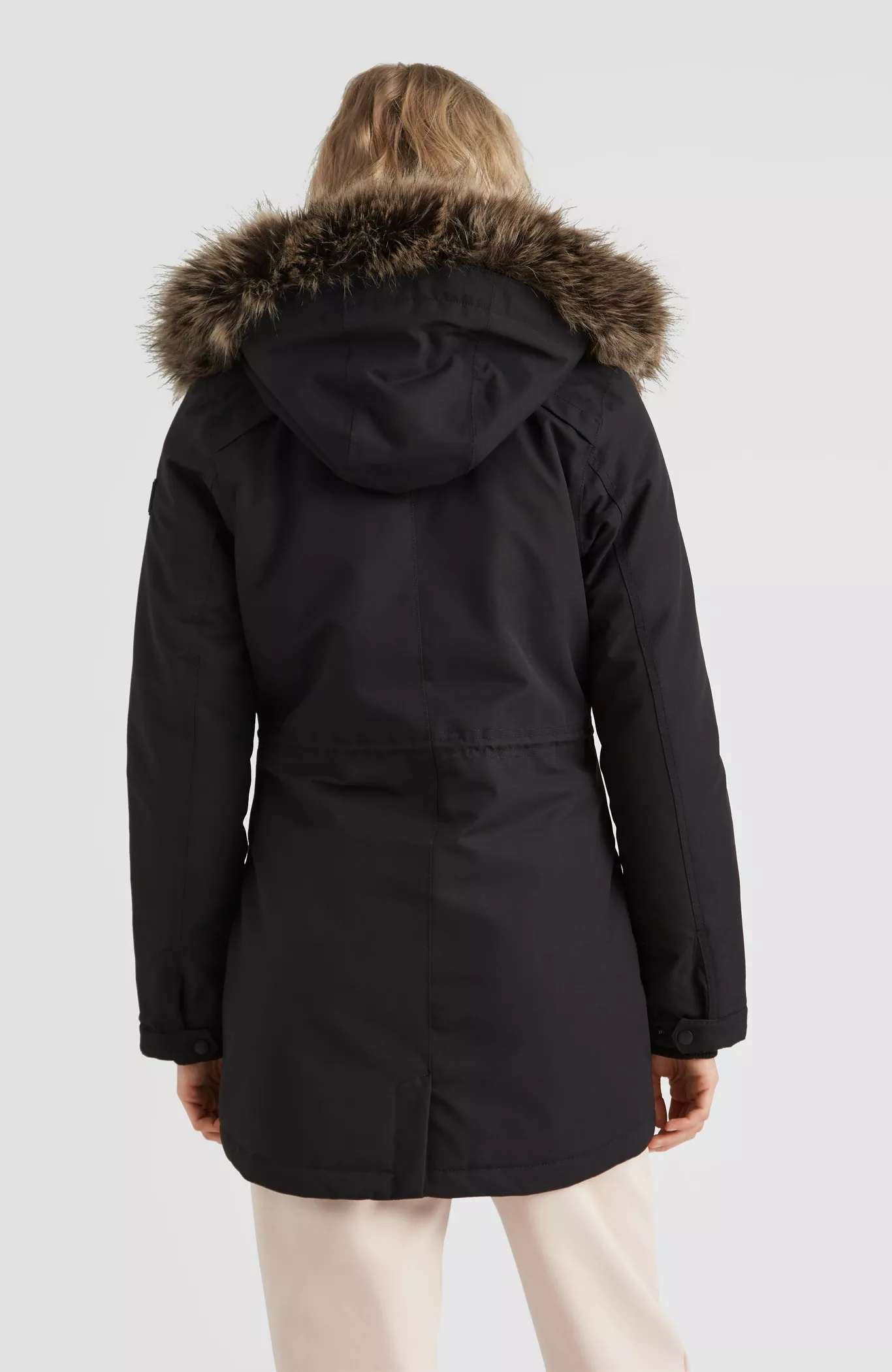 Dámsky zimný kabát s nadčasovým štýlom a technickými vlastnosťami. Štýlový dámsky vyúžený strih spolu s materiálom, ktorý odolá každému počasiu. Nepremokavosť a priedušnosť 10 000mm/ 10 000g/m2, podlepené kritické švy a poriadna dávka izolácie 100g na tele a 80g v rukávoch. Nesmie chýbať podšívka magma v zadnej časti a kapucňa s umelou kožušinou, ktorú si môžete odopnúť.