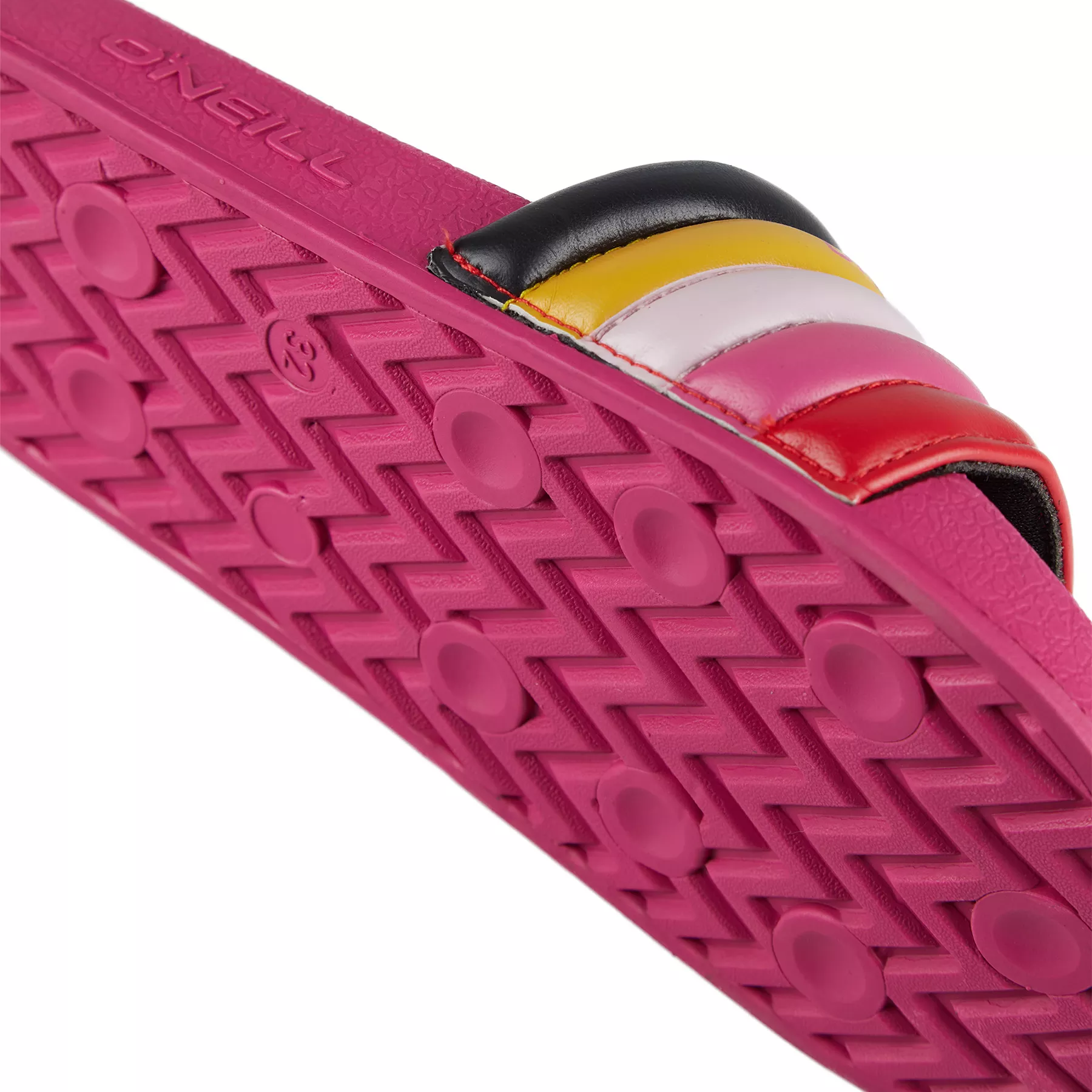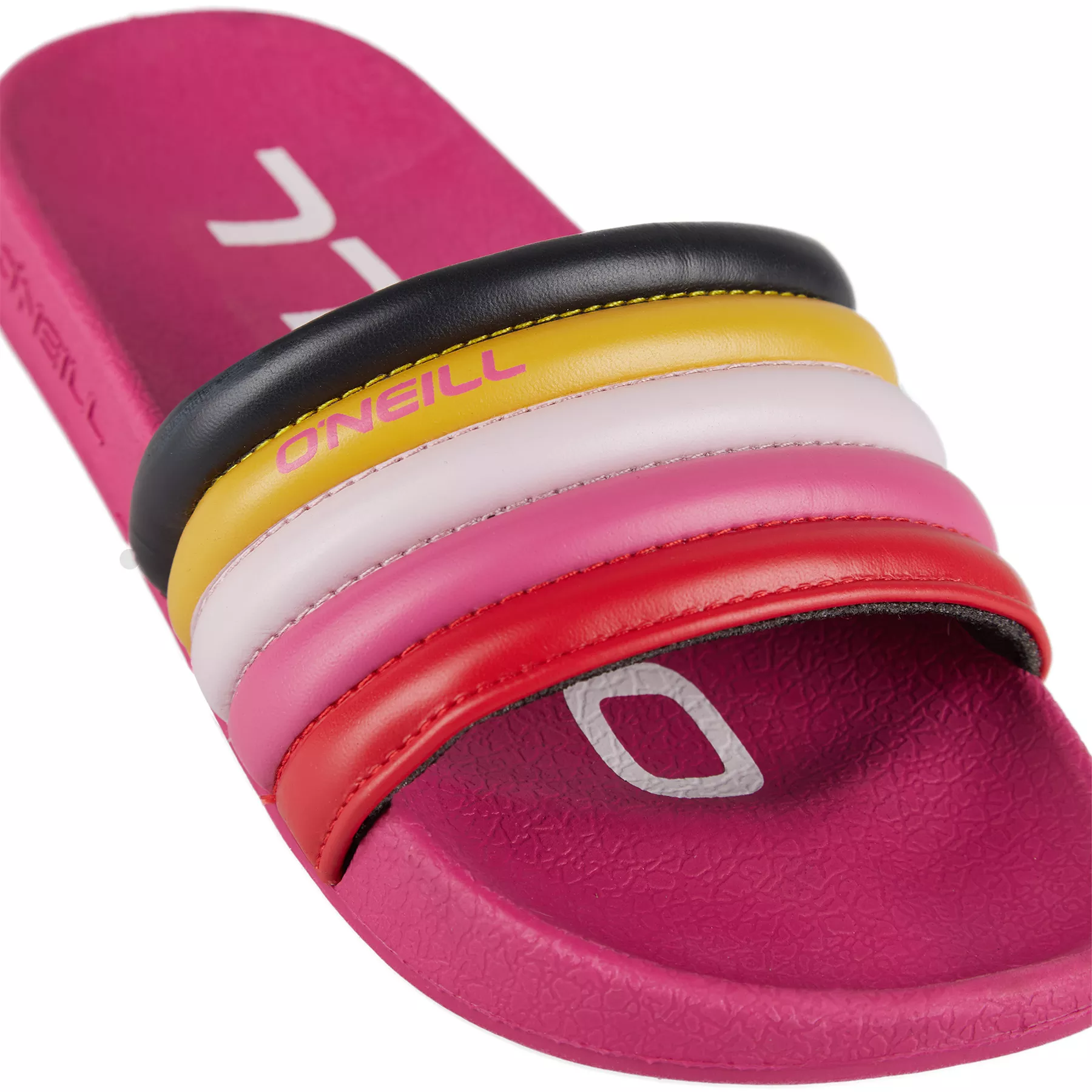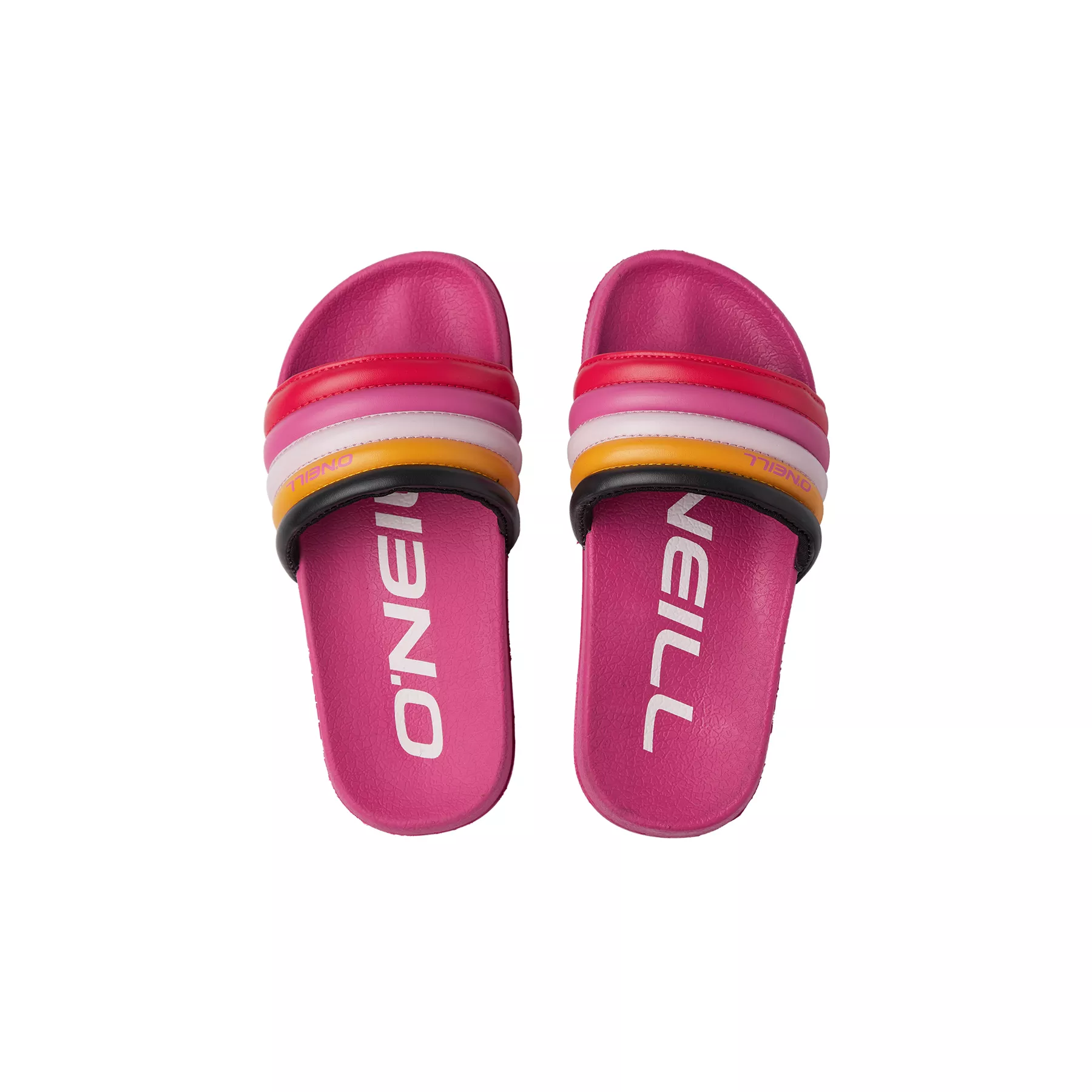 Trendové dievčenské šľapky s pruhovaným, viacfarebným zvrškom. Tieto dúhové nazúvacie šľapky sú vyrobené z materiálu bez obsahu PVC. Ideálny kúsok pre každé dievča, ktoré ich chce len rýchlo odkopnúť a hodiť sa do vody alebo pohodlného záhradného ležadla.