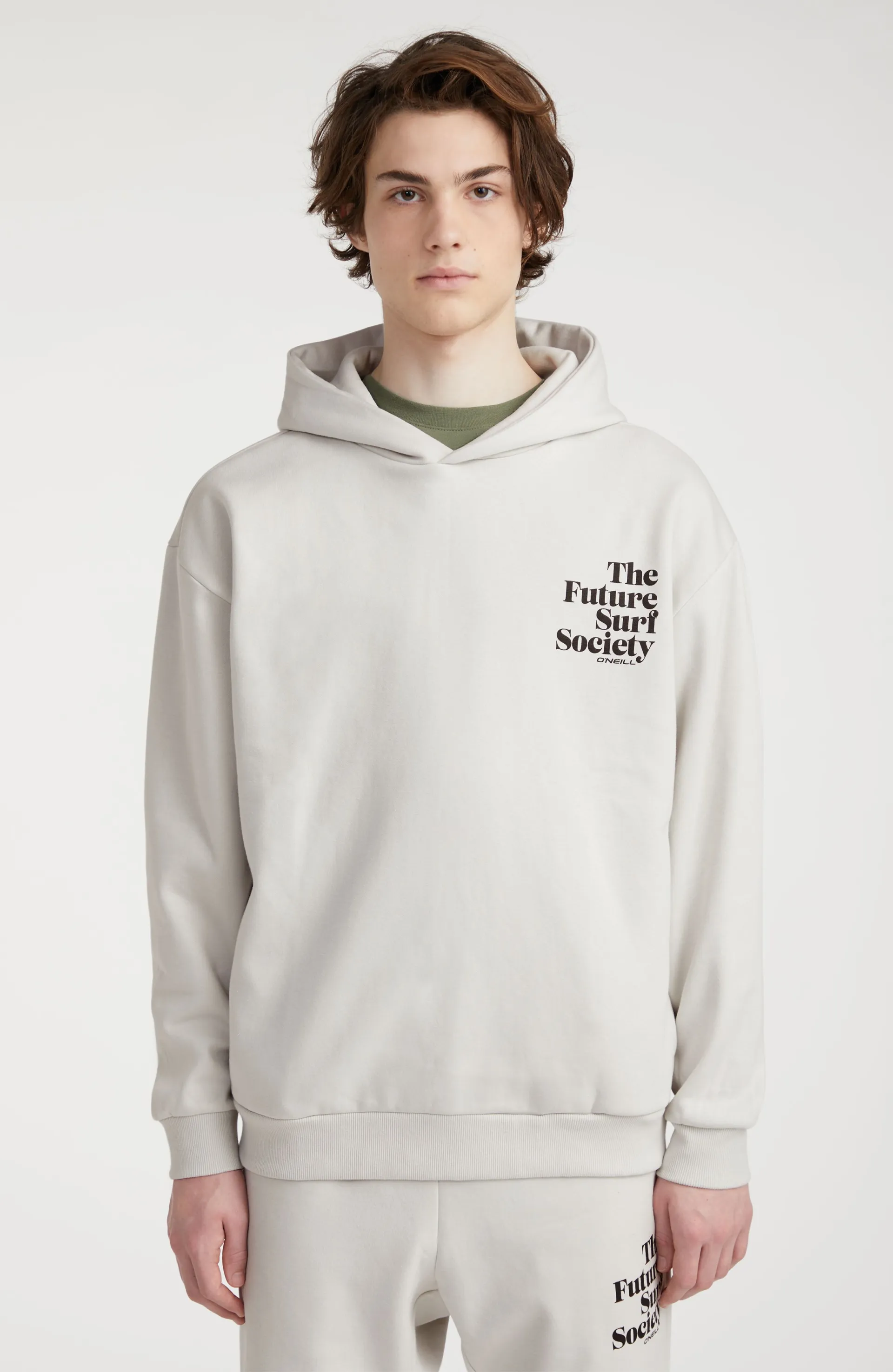 In the roomy Future Surf Society Hoodie, cut in a brushed medium-weight cotton blend, you'll experience pre- and post-surf comfort at peak levels. With a loose fit, cordless hood and two hand pockets you'll be ready for dawn patrol. Featuring The Future Surf Society logo on the chest and a discreet print on the back in Living Ink, made of by-product algae material.