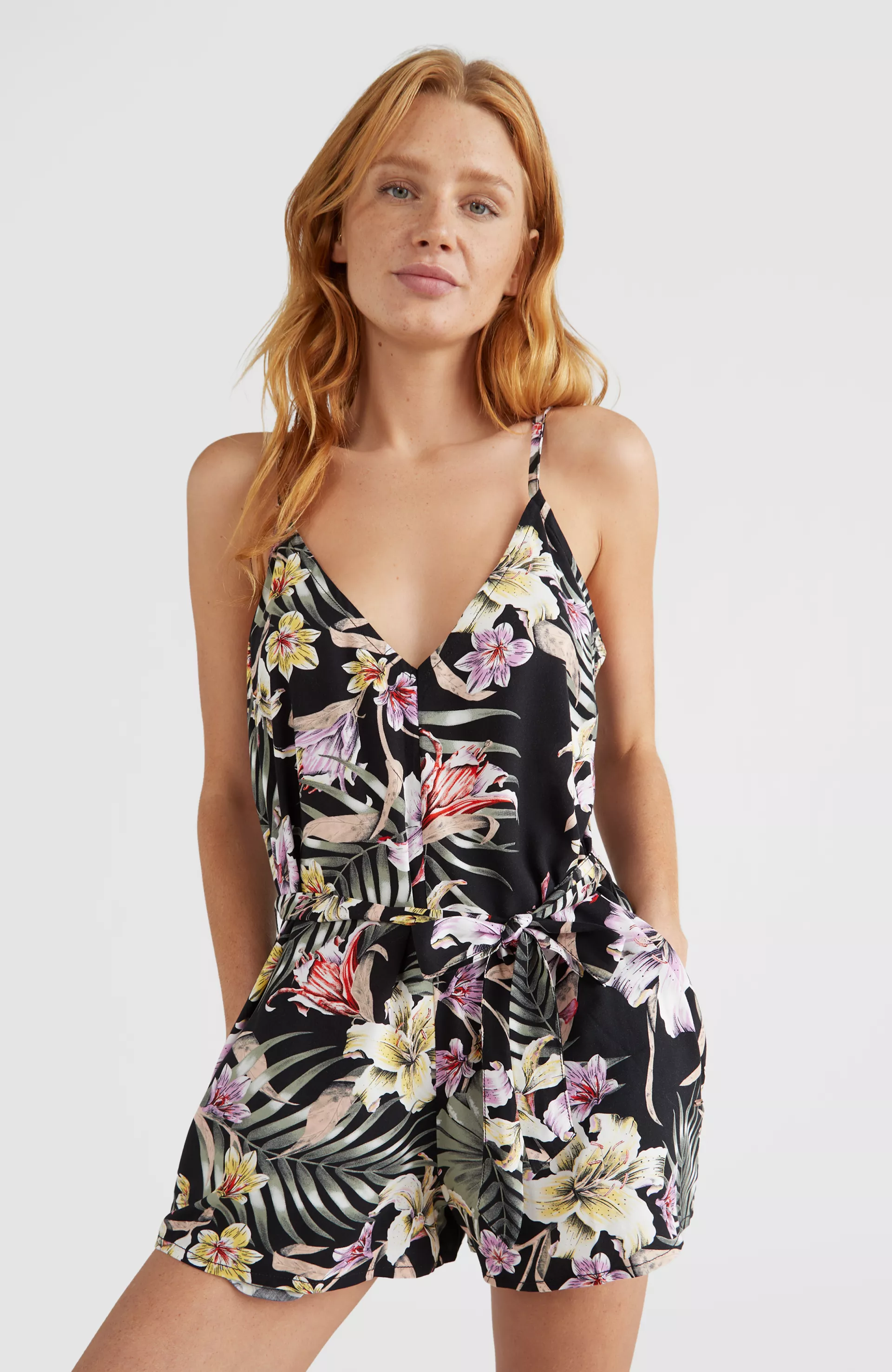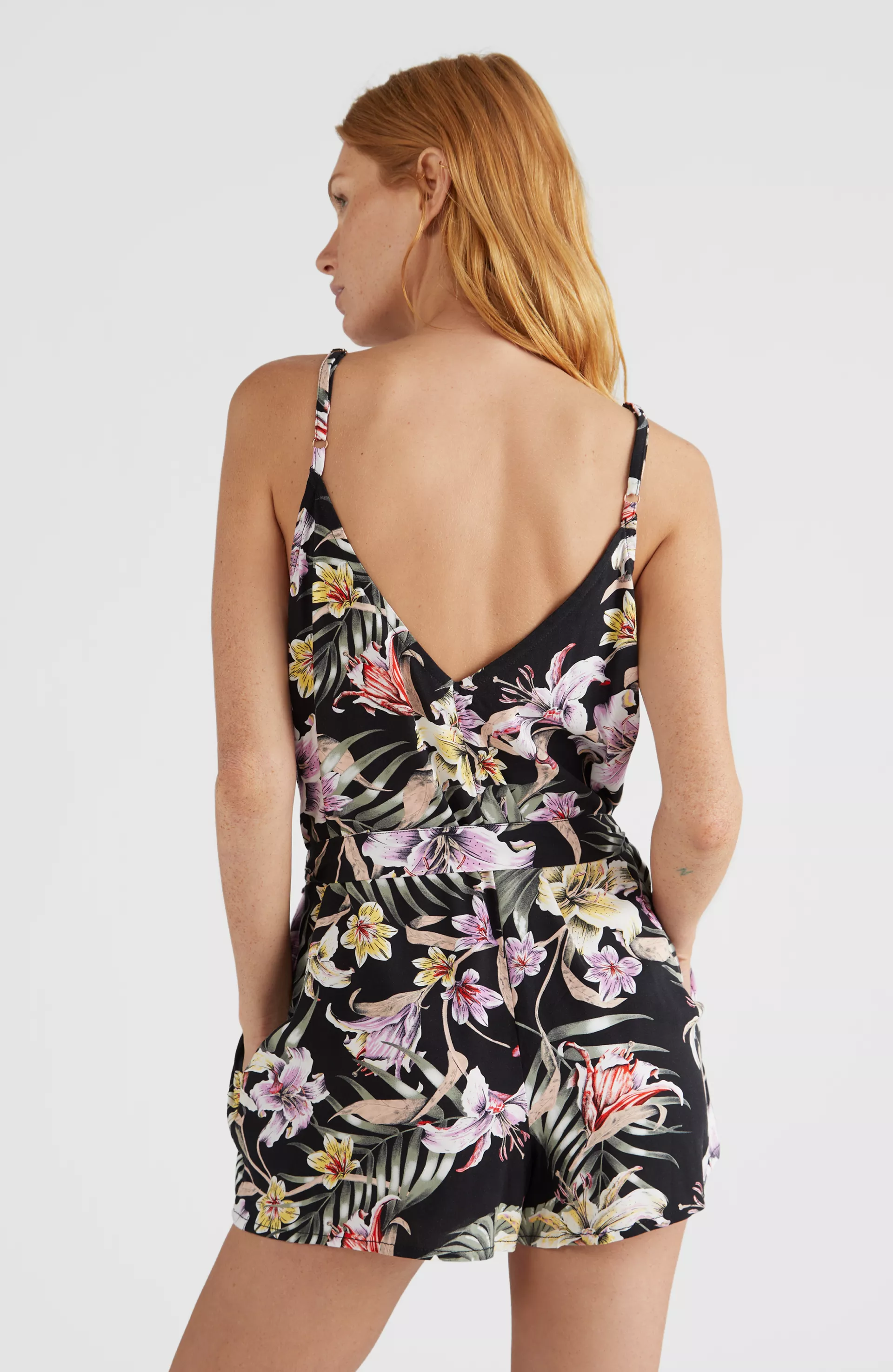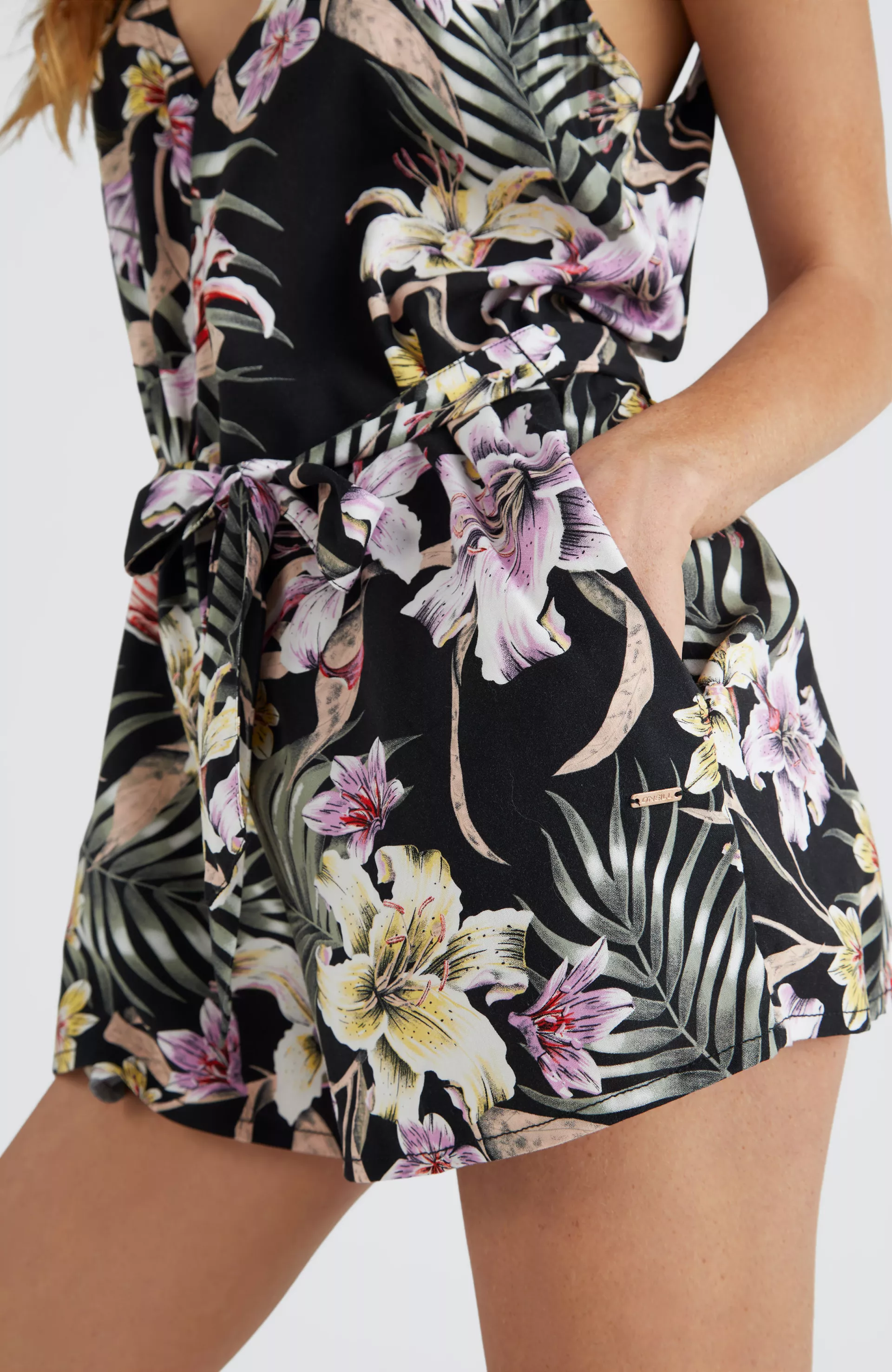 Dámsky letný krátky nohavicový overal s hlbokým výstrihom do V vpredu aj vzadu. Mix & Match Playsuit má nastaviteľné ramienka, pás s opaskom a je dodávaný v tých najhorúcejších vzoroch od O'Neill. Voľné šortky s vreckami na ruky v bočných švoch, vyrobené z viskózy LivaEco.