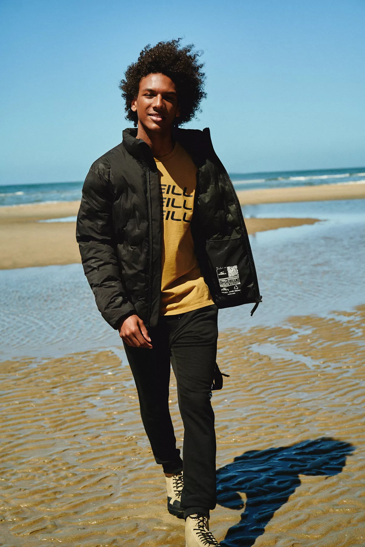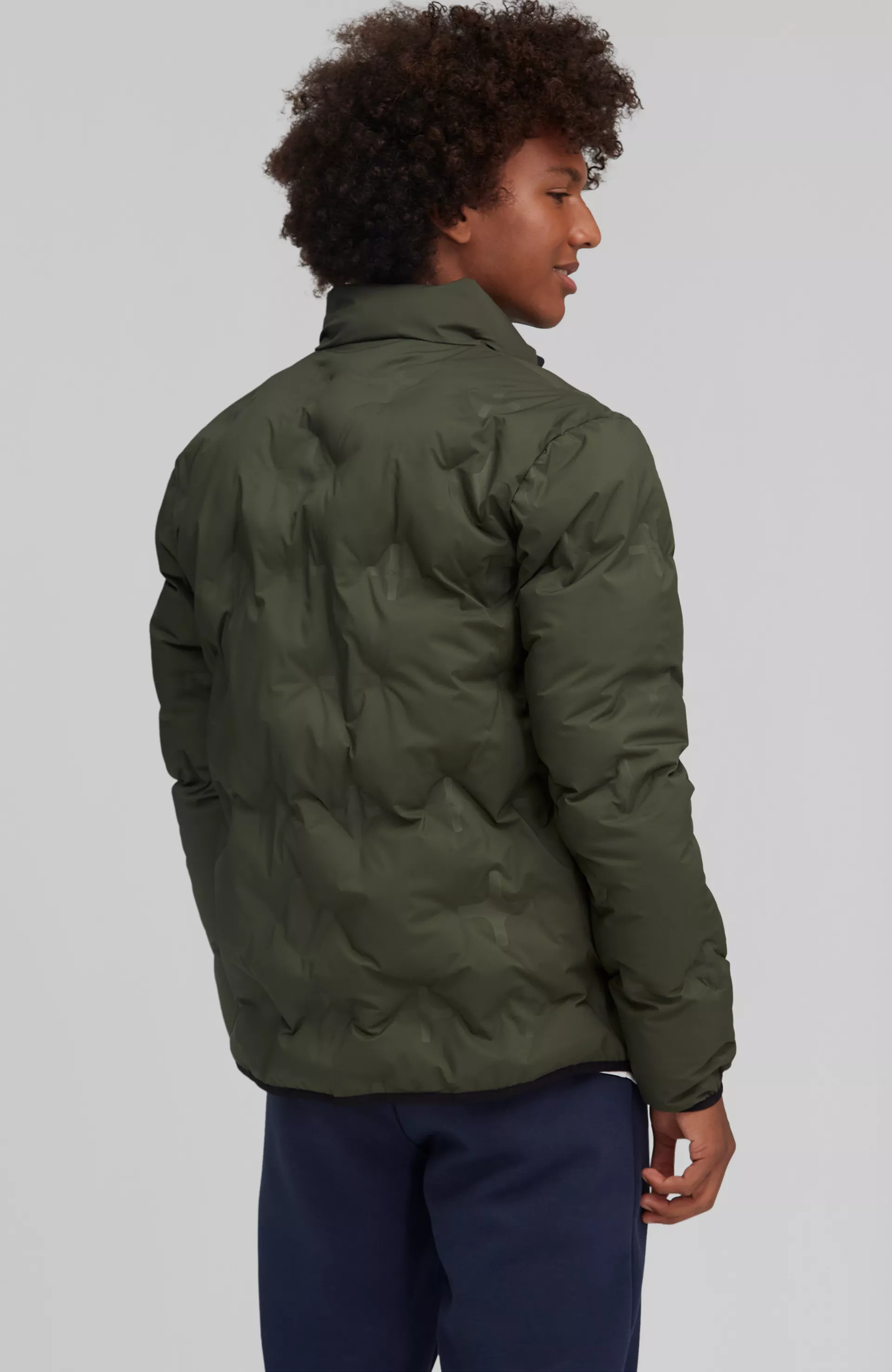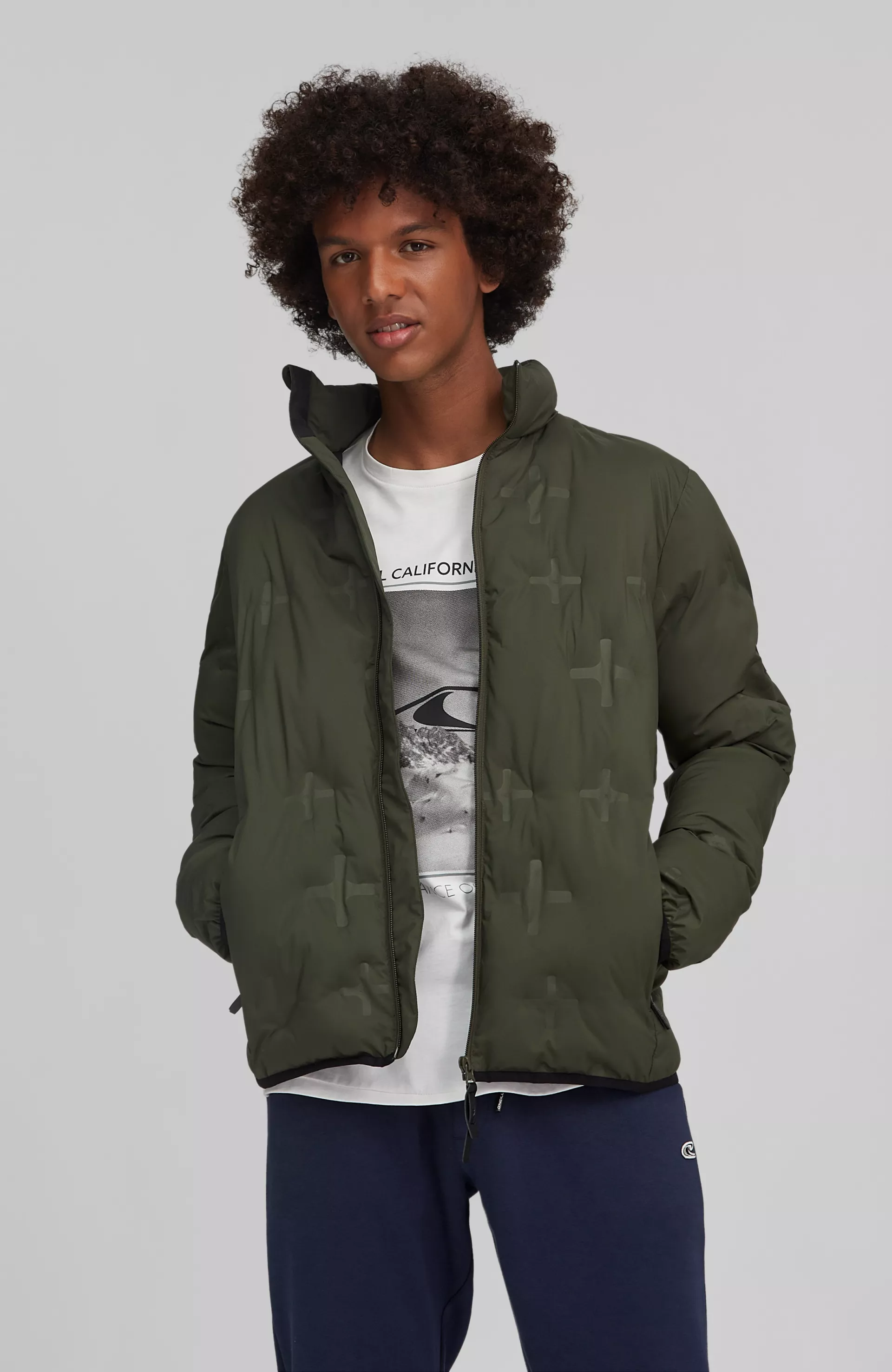 Pánska zimná bunda vyrobená z 50% recyklovaného polyesteru s tepelnou izoláciou. Bunda zo zváranej väzby má nasebe krížový vzor, ktorý dodáva tejto bunde nezameniteľný vzhľad. Vonkajšia časť bundy je vodoodpudivá a vnútorná izolácia je vyrobená z recyklovaného polyesteru. Elastické manžety a lemy sú pripravené tak aby teplo ostalo na svojom mieste a neunikalo.