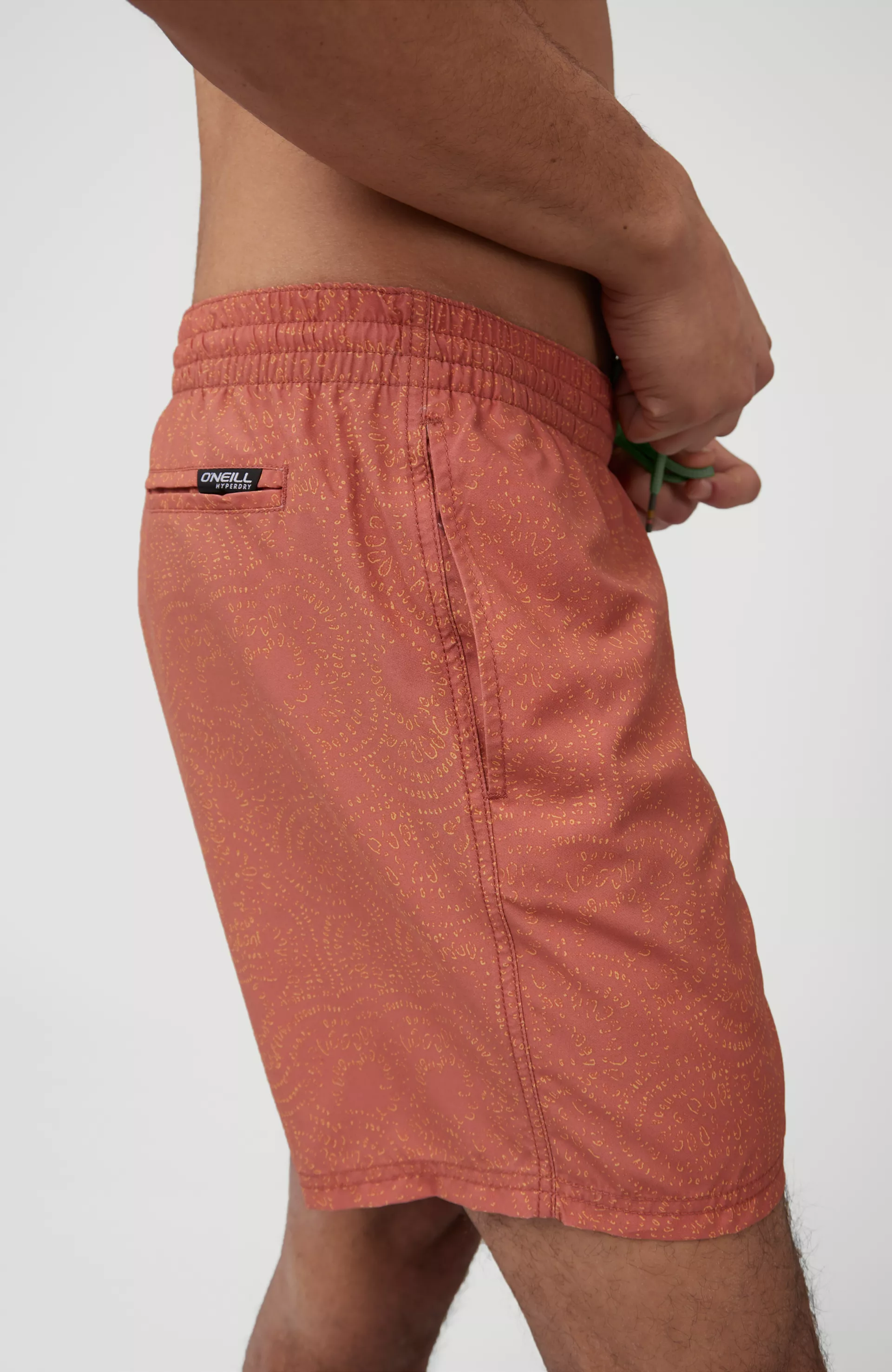 Boardshortky World Tribal, ktoré prichádzajú v rôznych farbách s nenápadnou potlačou, majú 16-palcový vonkajší šev. Sú šité z kepru s obsahom 50 % vlákna REPREVE®, ktorý je vyrobený z recyklovaných materiálov. Kontrastná farebná šnúrka a pružný pás, bočné a zadné vrecká a rýchle sušenie vďaka O'Neill Hyperdry.