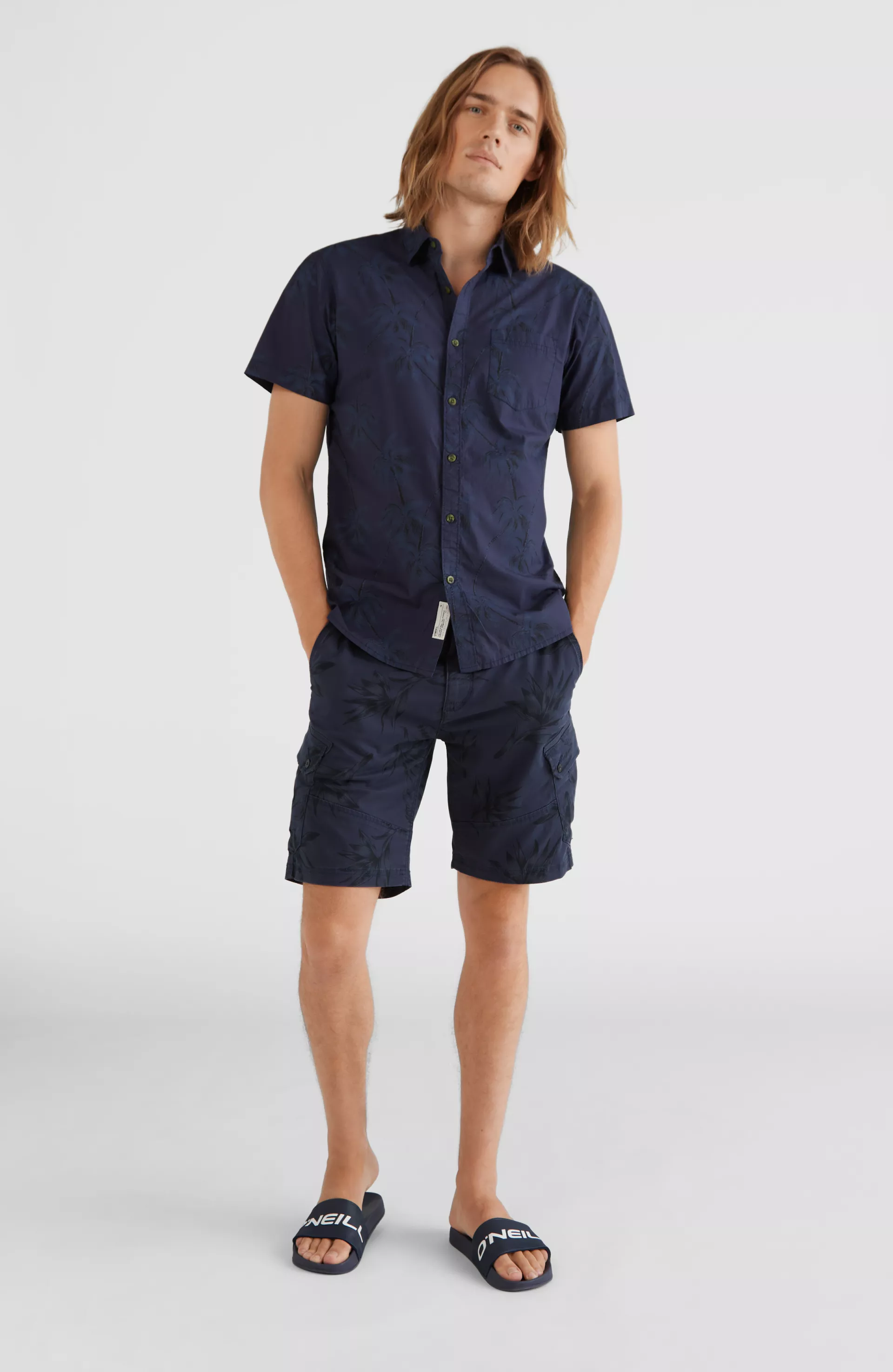 Pánske krátke nohavice s vreckami Complex Cargo, pripravené na čokoľvek. Majú viacero vreciek na uloženie vašich základných vecí. Tento model je pripravený v klasickom strihu regular s jemným vyúžením s detailom prešívania na prednej nohavici a s miernou strečovoštou látky, čo poskytuje úplnú voľnosť pohybu. Naš model meria 189 cm (94 hrudník, 74 pás a 95 boky) a nosí veľkosť 32