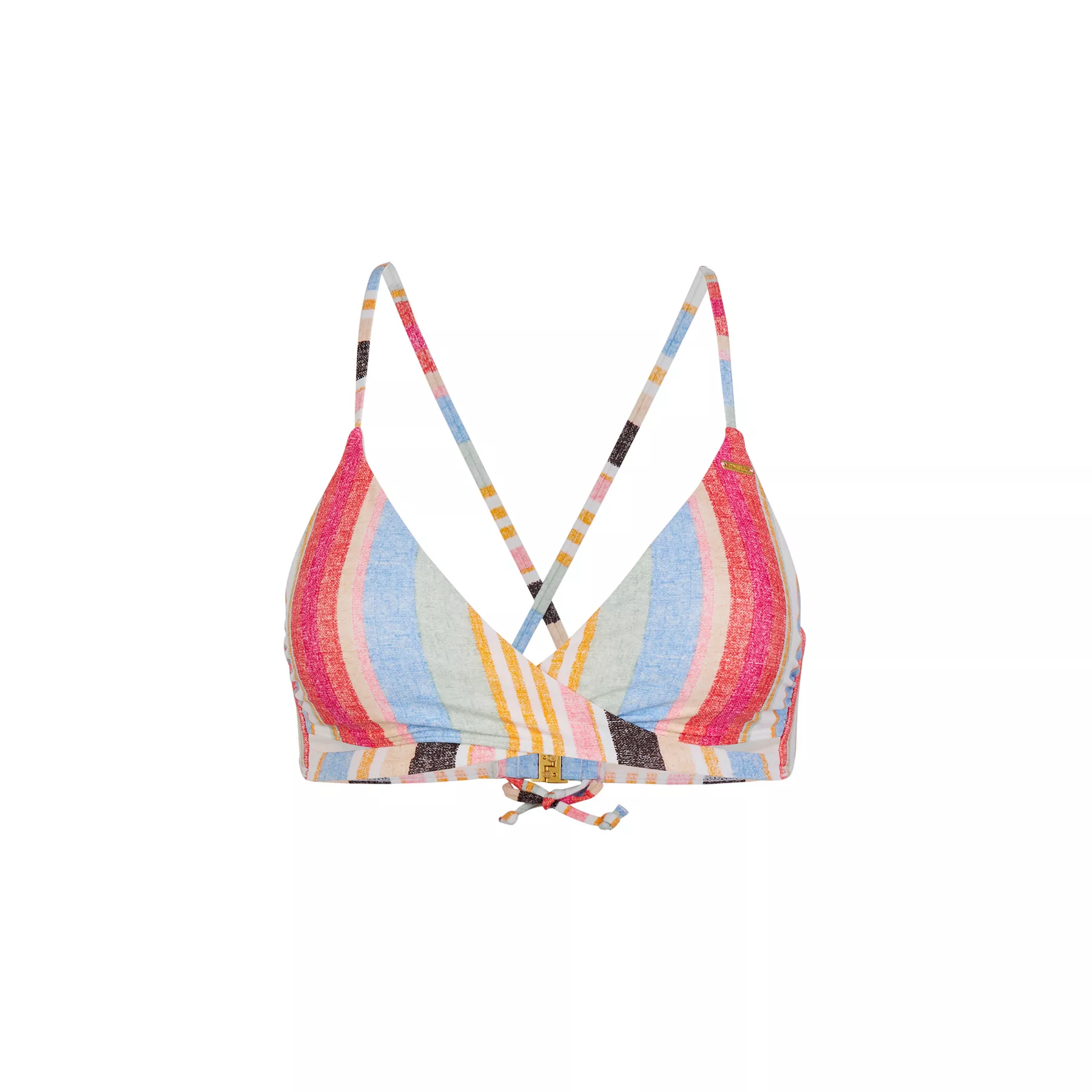Dámsky vrchný diel plaviek Baay Bikini Top, ktorý sa dobre nosí, majú nastaviteľné prekrížené ramienka, odnímateľné polstrovanie v košíčkoch, ktoré môžete jednoduchým spôsobom vybrať. Vyrobené zo 79% recyklovaných materiálov. Vyrábajú sa v živých blokových farebných variantoch a s rýchlo-schnúcou povrchovou úpravou. Klasické kovové zadné zapínanie brallete.